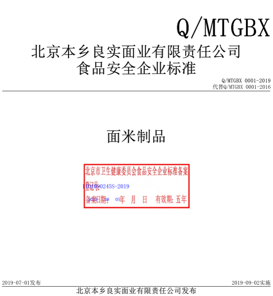北京本鄉(xiāng)良實(shí)面業(yè)有限責(zé)任公司本次備案的企業(yè)標(biāo)準(zhǔn)《面米制品》,經(jīng)過我公司技術(shù)人員朱麗真老師的編寫、備案,所提交的材料符合北京市衛(wèi)健委的備案要求,于2019年08月成功備案并在北京市食品安全標(biāo)準(zhǔn)管理系統(tǒng)公示。